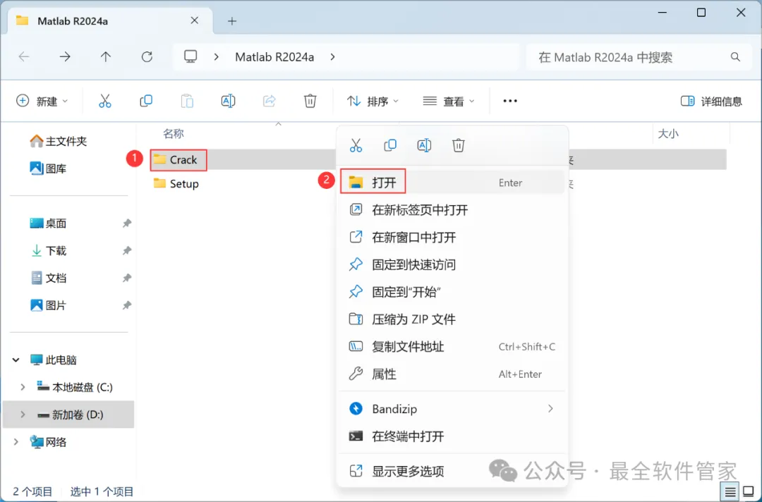 17、回到Matlab R2024a文件夹,找到【Crack】文件夹,右键【打开】它