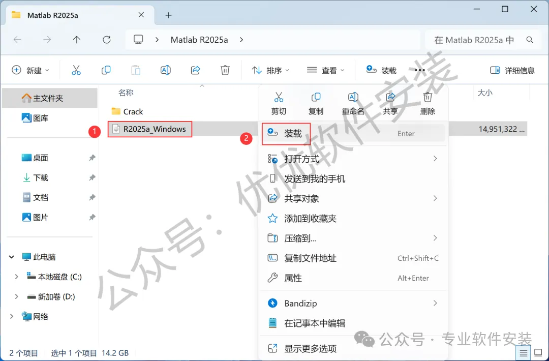 3、找到【R2025a_ Windows】文件,再点击【装载】