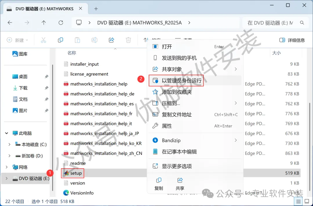 4、找到【setup】应用程序,右键选择【以管理员身份运行】它