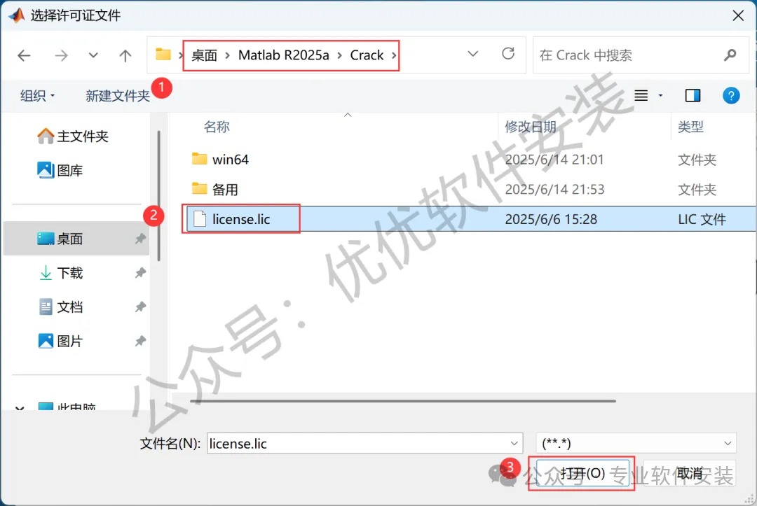 9、找到并选中安装包Crack文件夹下的【license.lic】,再点击【打开】