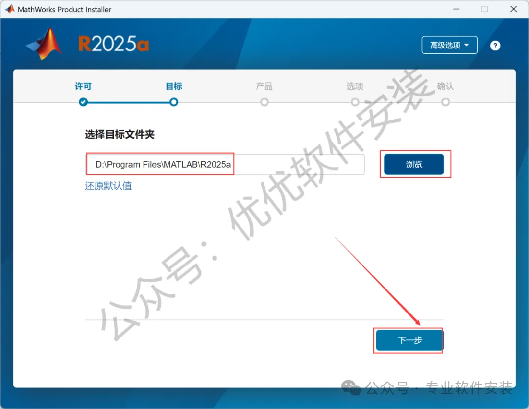 11、软件默认安装在C盘,可自定义更改软件安装位置,这里小编选择安装在D盘;点击【下一步】
