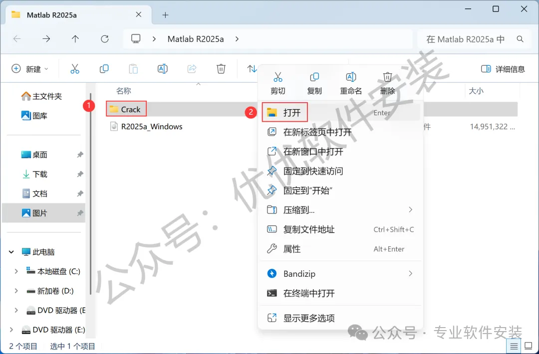 17、回到Matlab R2025a文件夹,找到【Crack】文件夹,右键【打开】它