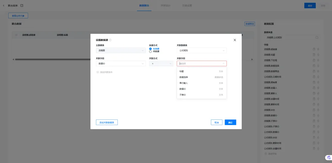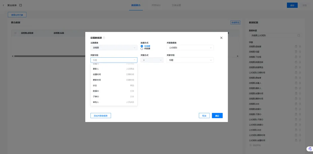 本次更新在聚合菜单支持的关联字段类型中增加了系统字段。