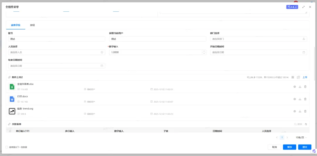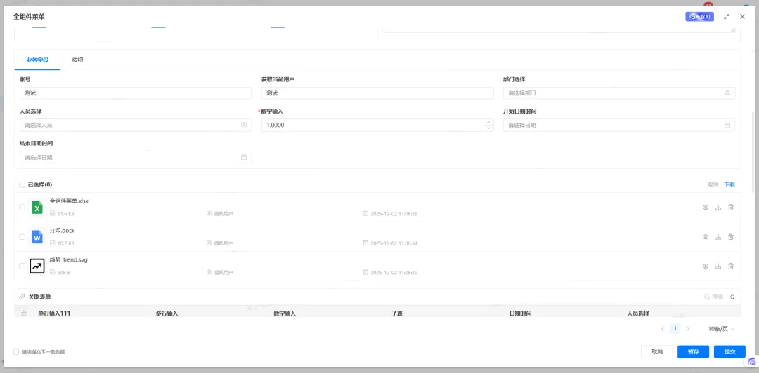 本次更新在附件上传、模版文件组件处新增批量下载功能。