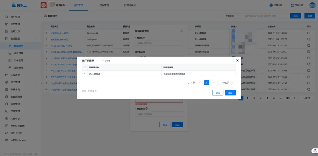 维护Doris数据源后,可在数据模型处使用。