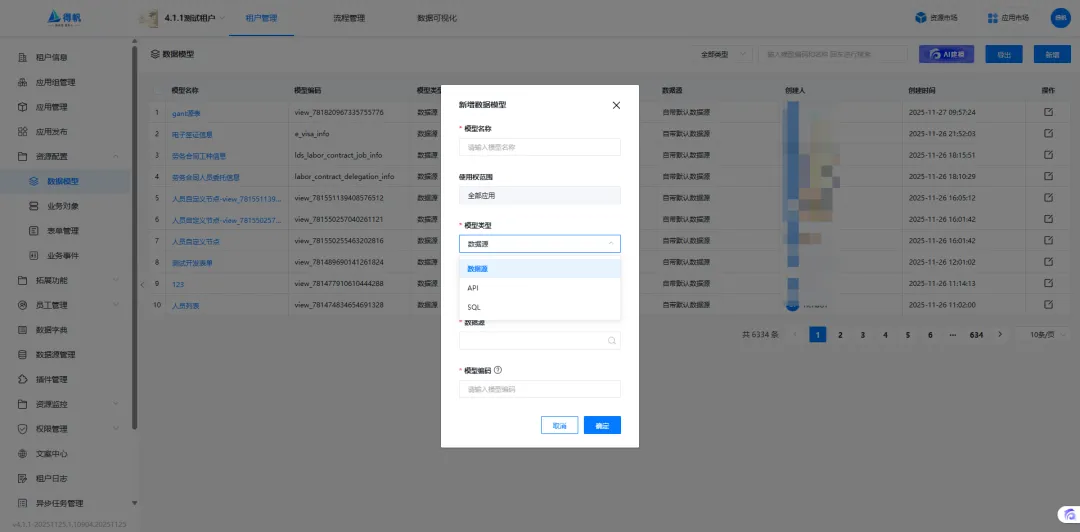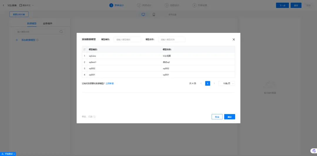插件启用后,在数据模型中可创建SQL类型的模型。