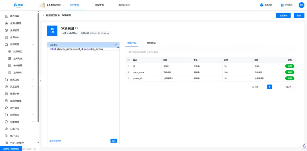 模型创建完成后,即可在SQL模型菜单中使用创建的SQL模型。