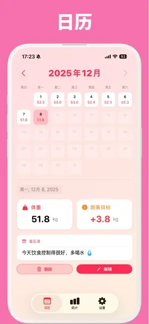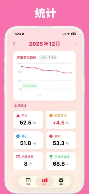 介绍:一款健康健美应用,主打轻量化体重记录管理,日历视图快速记录体重,图表直观展示变化趋势、可视化目标进度。可记录心情、饮食与运动,支持 iCloud 和苹果健康同步,有多单位、深色模式、打卡提醒功能,全程不收集数据,多端适配。 ![]() ![]() ![]() 长按二维码 识别下载 |