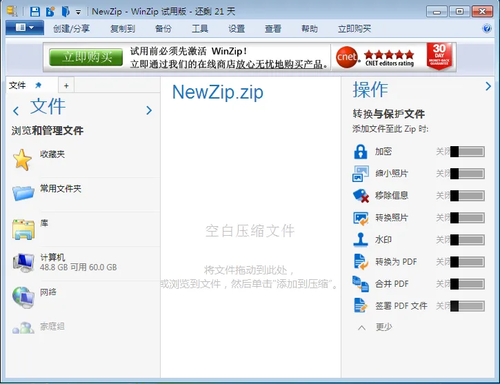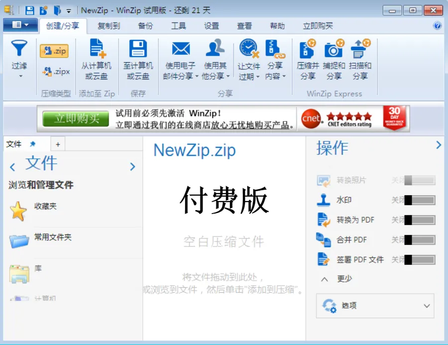 目前,WinZip免费版功能相对来说还比较简单,与WinRAR免费版相比差距比较明显,不过好在免费还无广告弹窗,你会考虑安装吗?