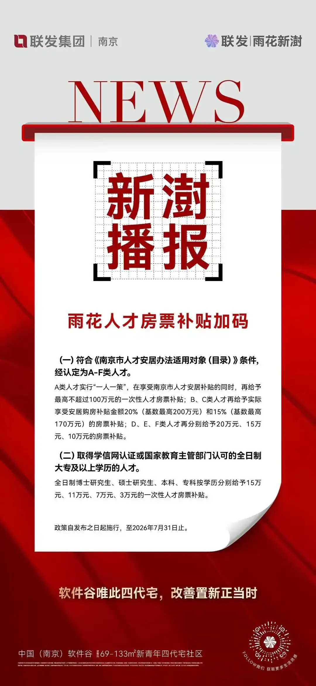 最高补贴100万!雨花房票新政落地,软件谷唯一四代宅要火