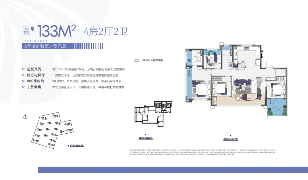 作为为南京新青年定制的改善户型,建面约133㎡产品延续了项目“成长型”的产品思维,又在各个改善维度全面提升。