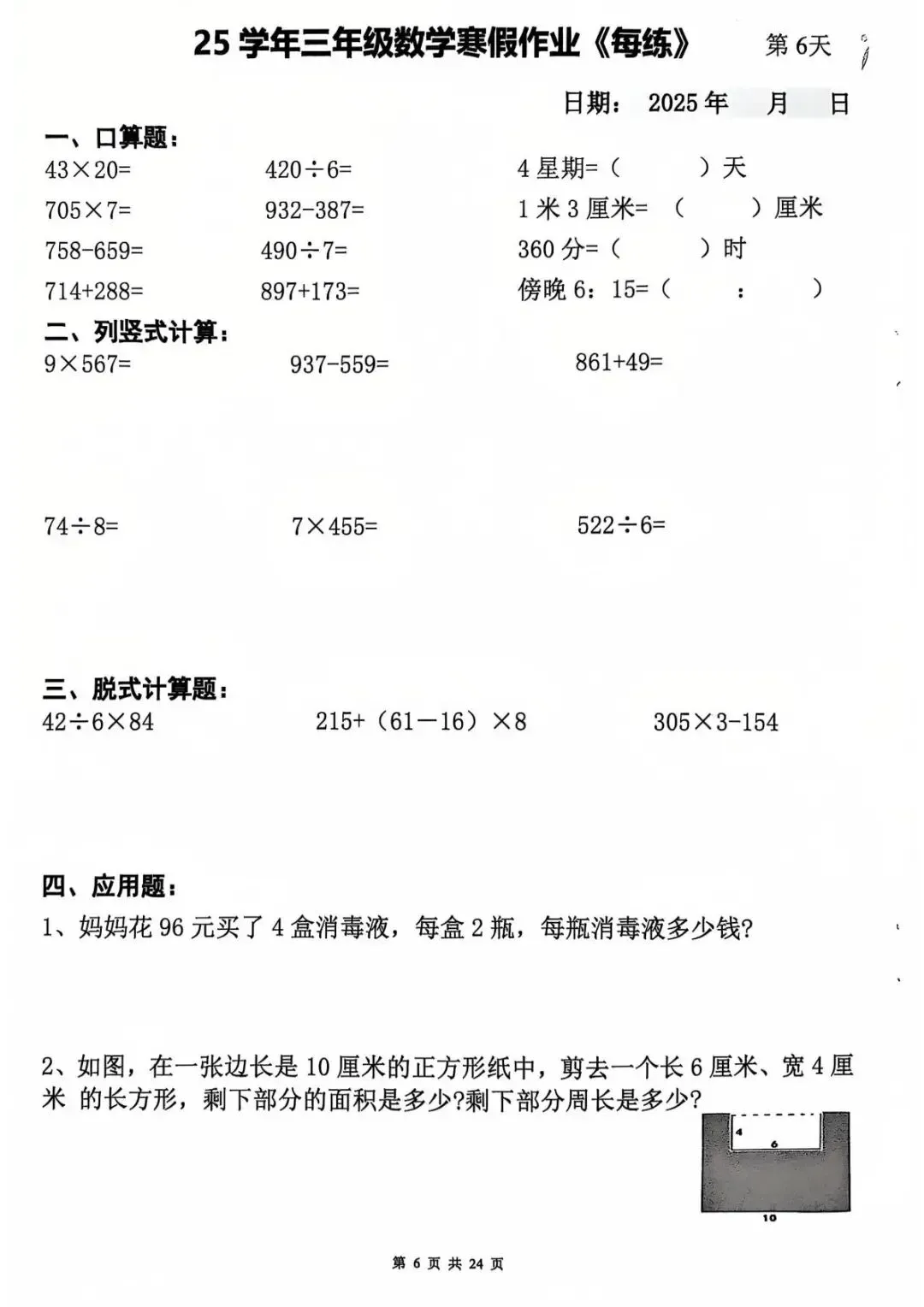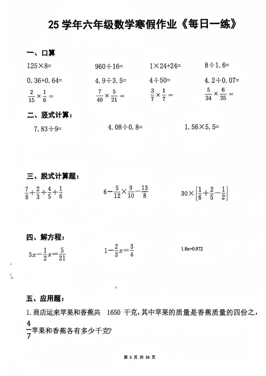 【2026寒假】数学每日一练pdf电子版,可免费下载打印一二三四五六年级合集