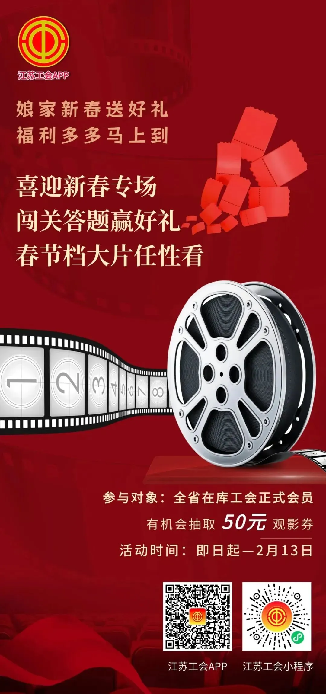 马上有票!来江苏工会APP答题,抢观影券!