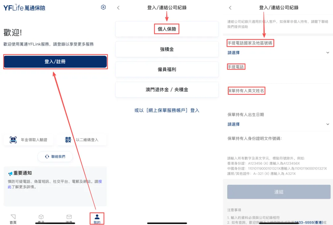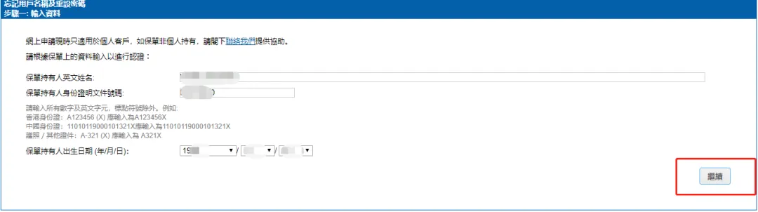 註冊成功後,輸入保單持有人姓名、出生日期及身份證號碼,即可正常登錄使用。
