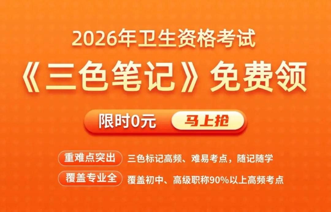 现在,针对 2026 年卫生资格考试的《三色笔记》来了,涵盖初级、中级、高级职称 ——免费领! 专门瞄准医护职称考试的 “失分坑”,用 “三色标注法” 把考点拆解得明明白白: