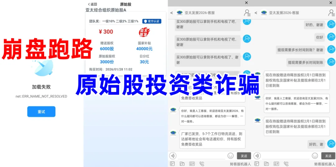 不法分子冒冒充某公司的名义,打着公司上市的旗号,制作散布涉诈APP,虚构推广“原始股”理财诈骗。据网友反馈,该项目于8日,APP已经无法打开,崩盘跑路!