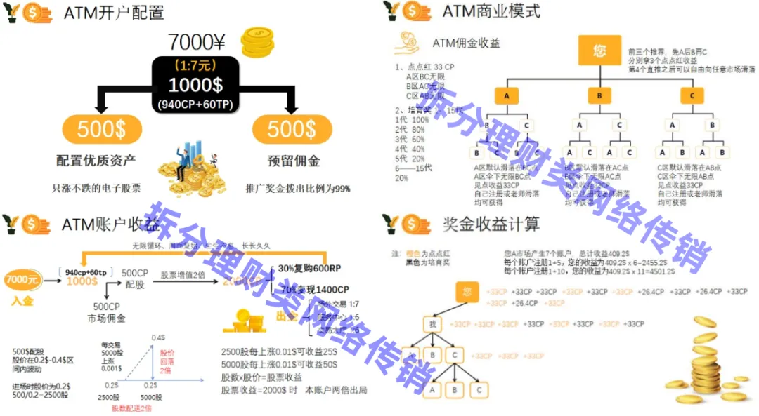 参与者缴纳费用加入后可获得两倍静态收益,发展下线还可以获得推荐奖、点点红奖、15代培育奖等动态收益涉嫌传销、非法集资等。