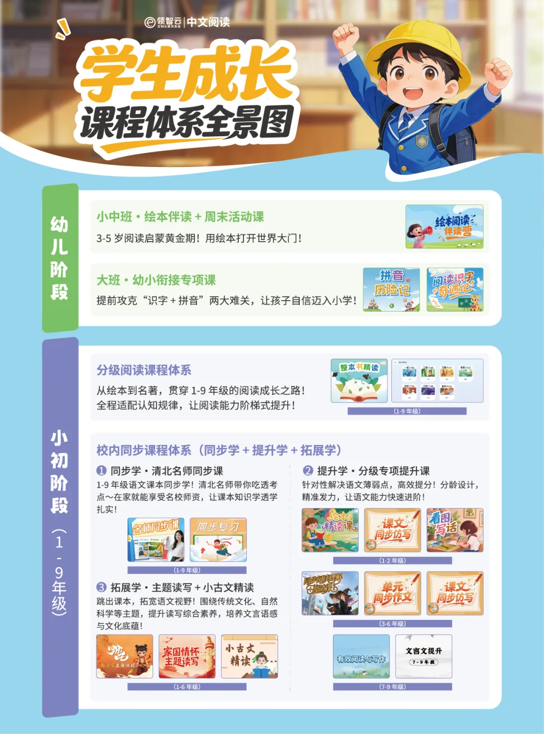 ① 完整课程体系:覆盖幼小衔接、分级阅读、校内提升、素养拓展四大板块,含趣味拼音、名著导读、单元习作、小古文等丰富内容。