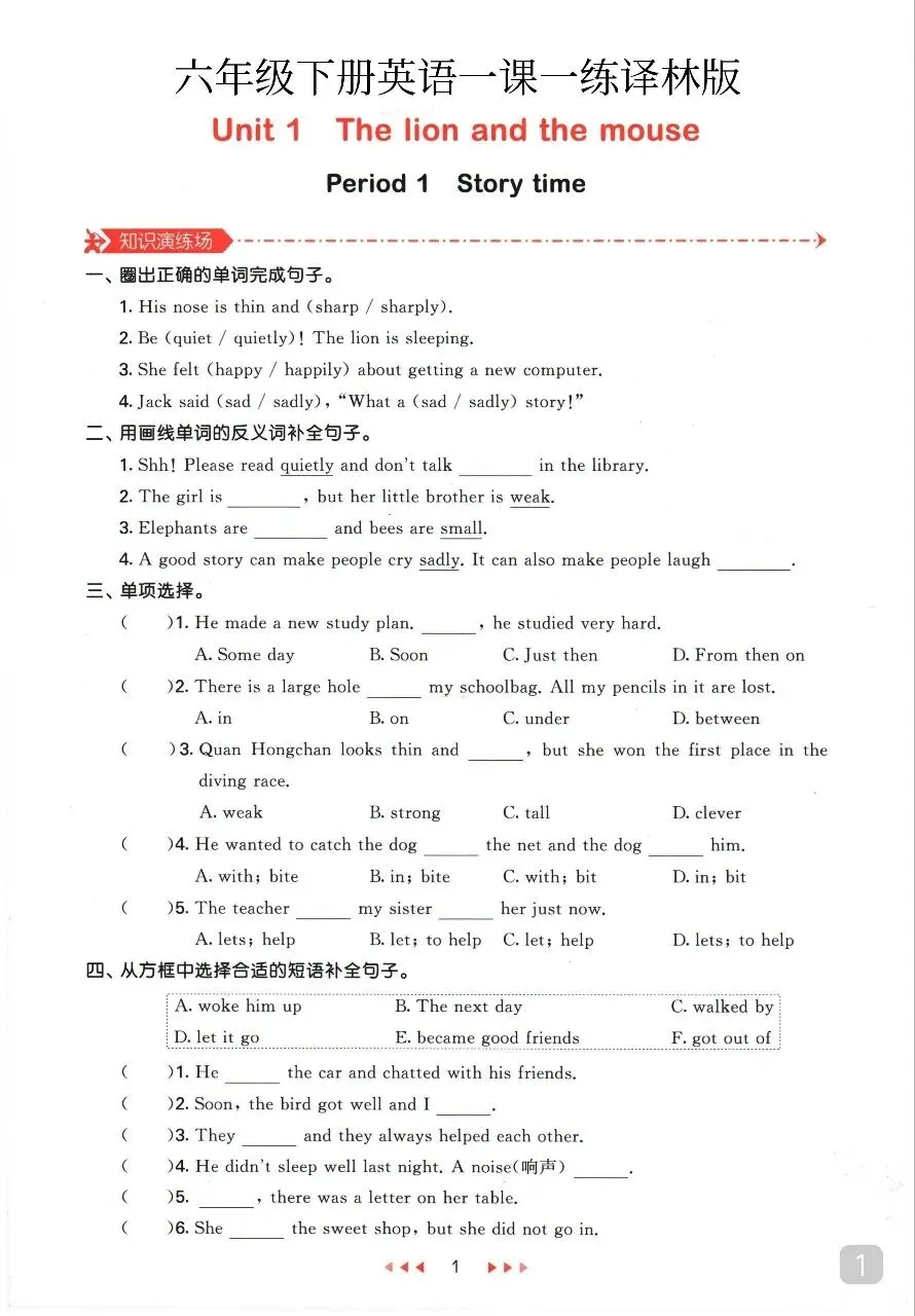 六年级(下)英语一课一练《译林版》.pdf