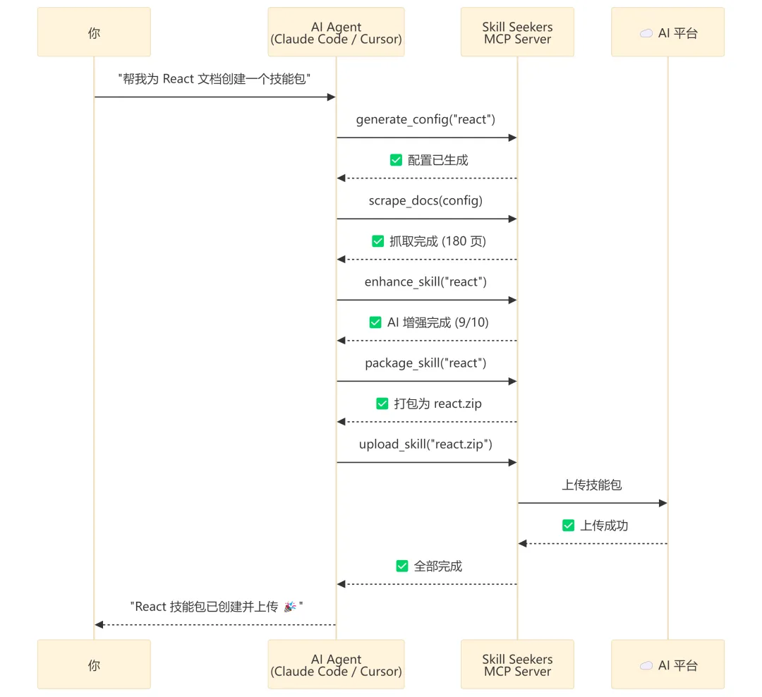 skill-seekers scrape --config configs/react.json # 15分钟,自动抓取