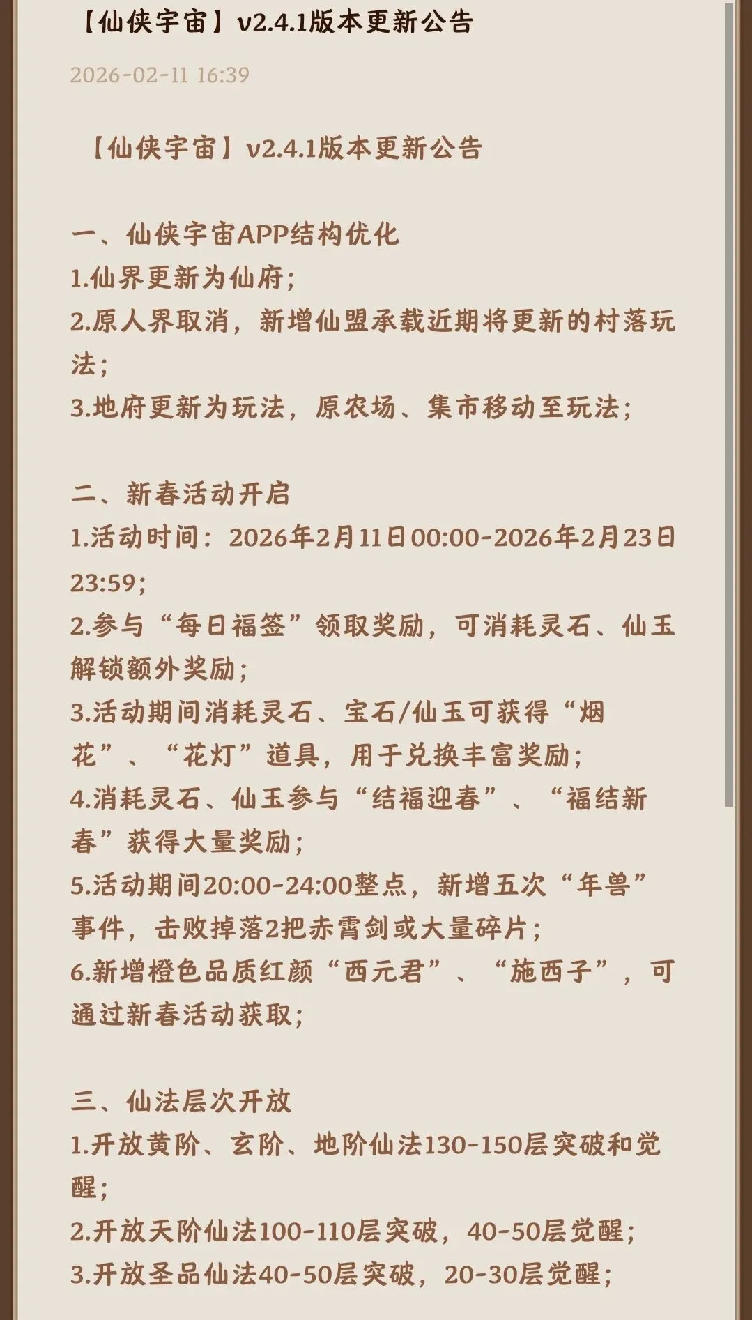 【仙侠宇宙】APP结构优化!新春活动开启!仙法层次突破增加!要起飞!
