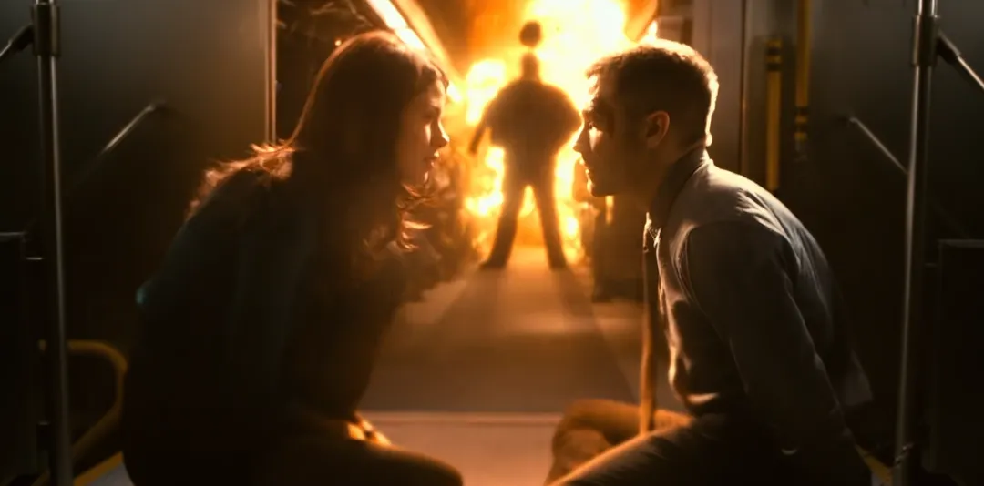(影片开场,主角在列车上惊醒后突然爆炸的片段)