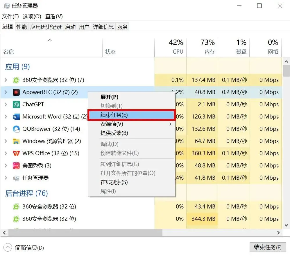 找到那些不急需的程序或进程,右键点击“结束任务”,为WPS腾出更多系统资源,运行速度自然倍增。