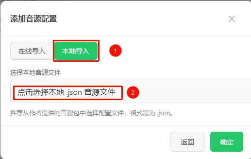 2.导入音源:点设置>添加音源>本地导入>选择下载到的音源文件>确定