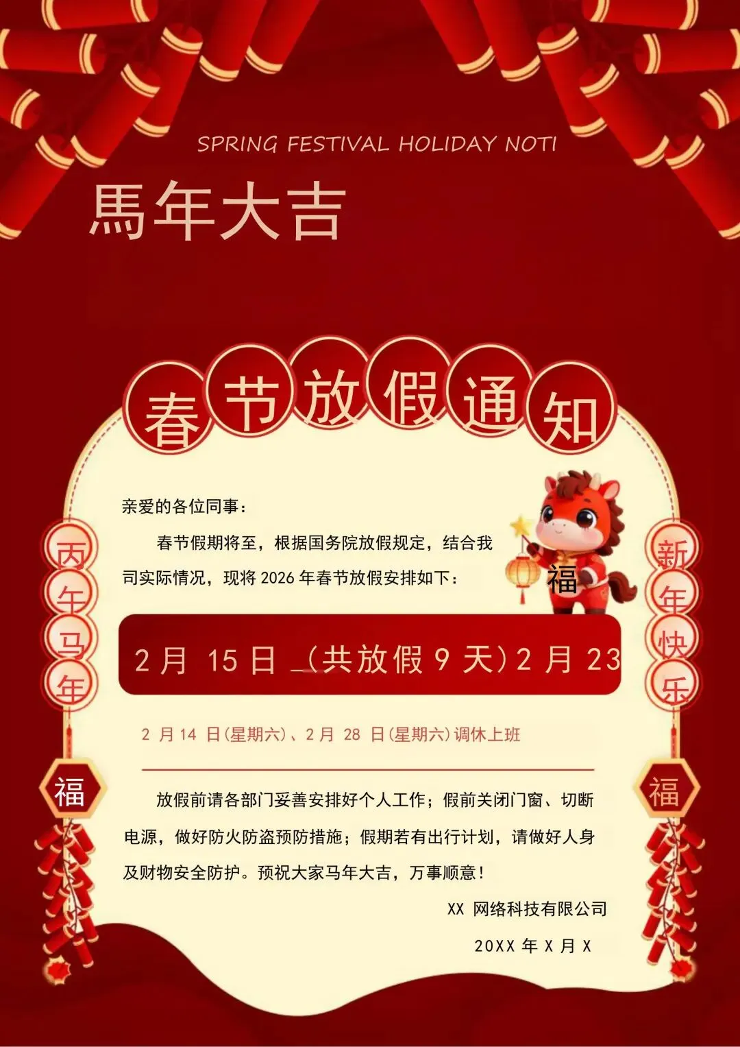 春节放假通知(ppt模板)免费保存下载打印可编改