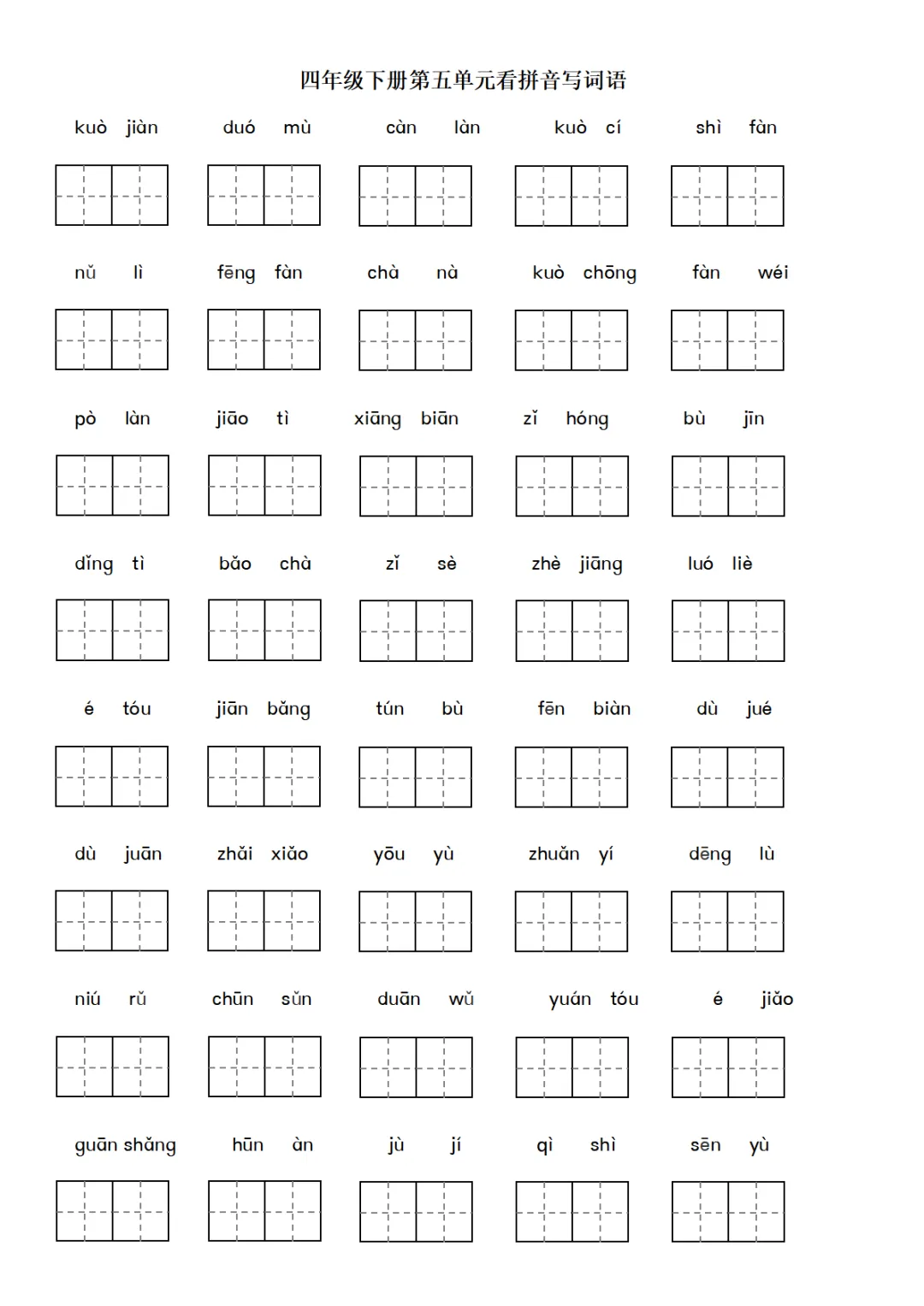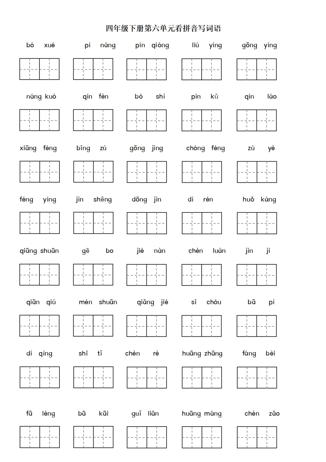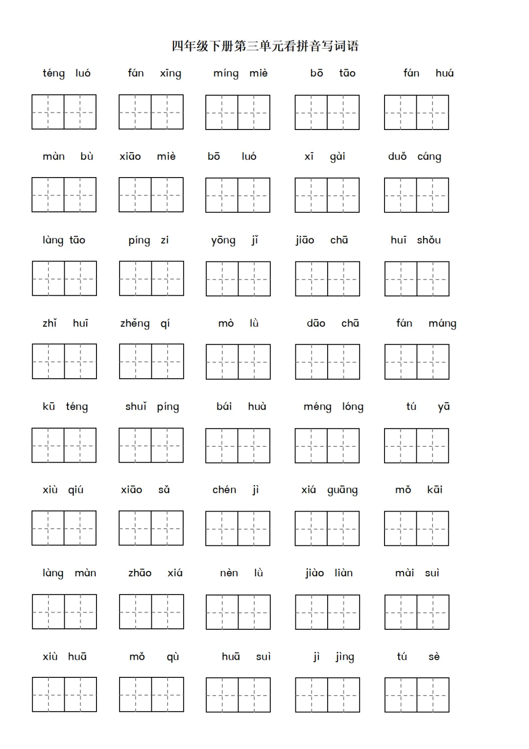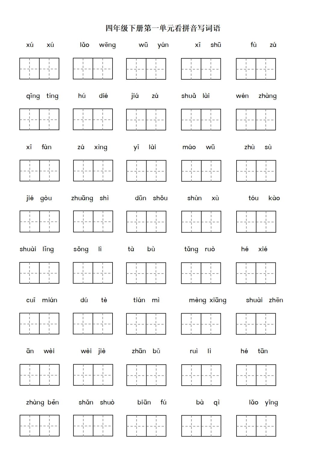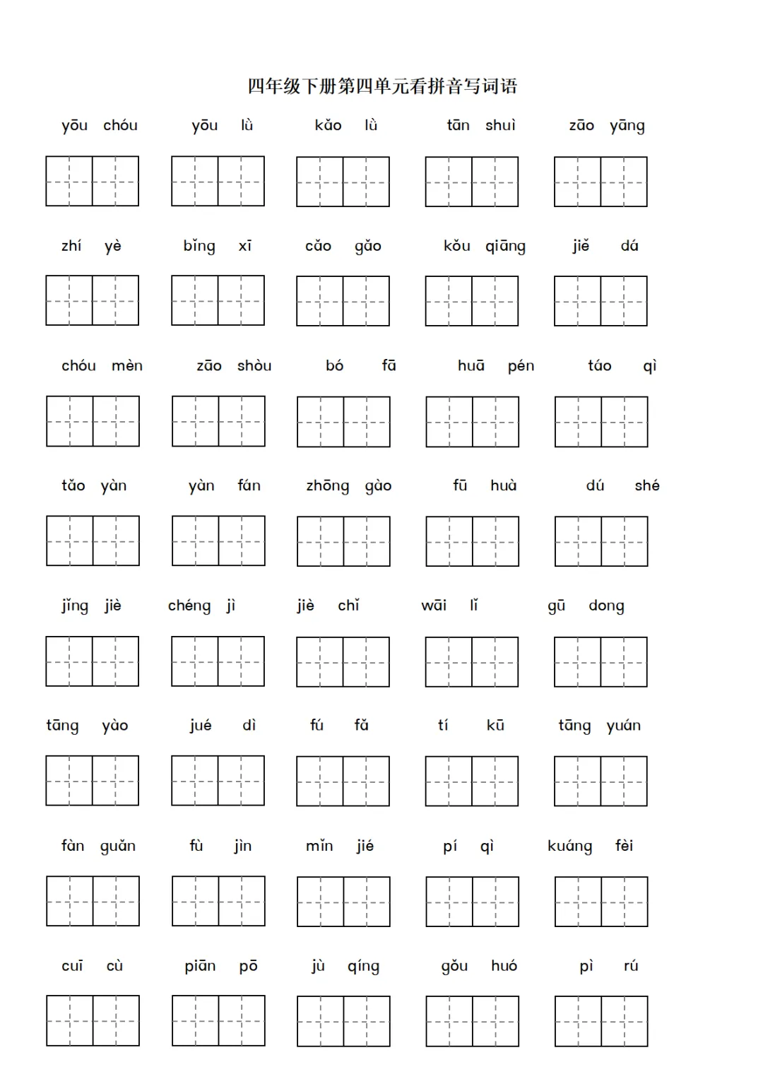 四年级下册语文词语表看拼音练习pdf下载,家长都收藏了!