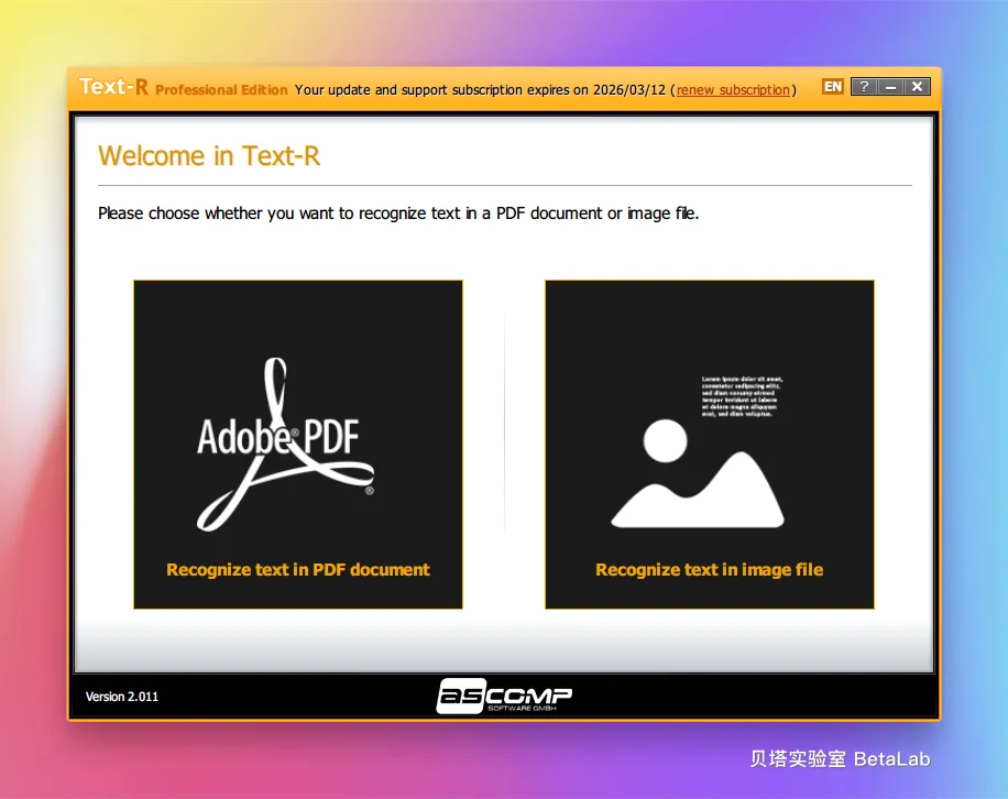 ASCOMP Text-R Professional 是一款专业的 OCR 软件,主要用于从图像和 PDF 文件中提取文本,并将其转换为可编辑的格式。