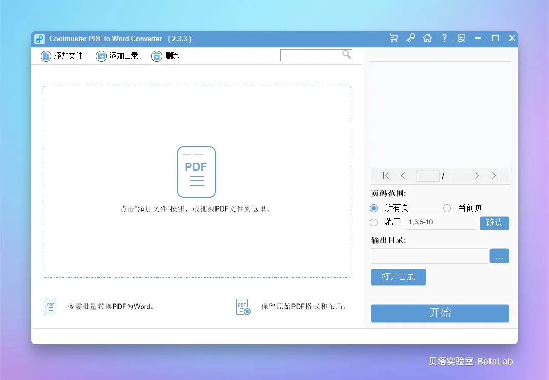 灵活选取页面:提供选择性页面转换功能,用户可以选择转换整个 PDF,也可以指定具体的页面或页码范围,只为所需内容进行转换,灵活性高。