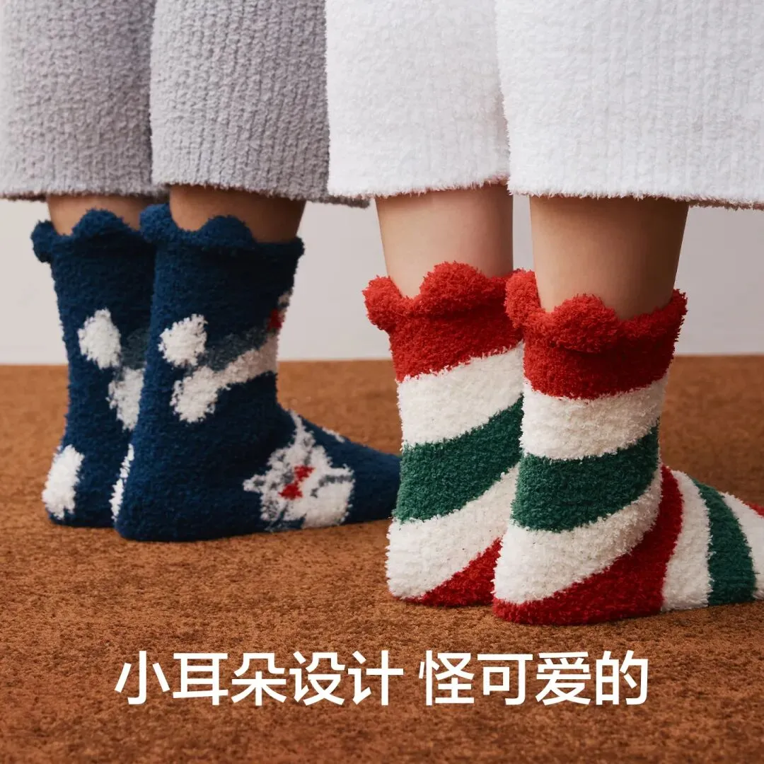 【秋冬追剧神器】绒绒地板袜3双装��踩雪般软糯,锁温加厚不冻脚!小耳朵设计萌翻天��情侣必备~