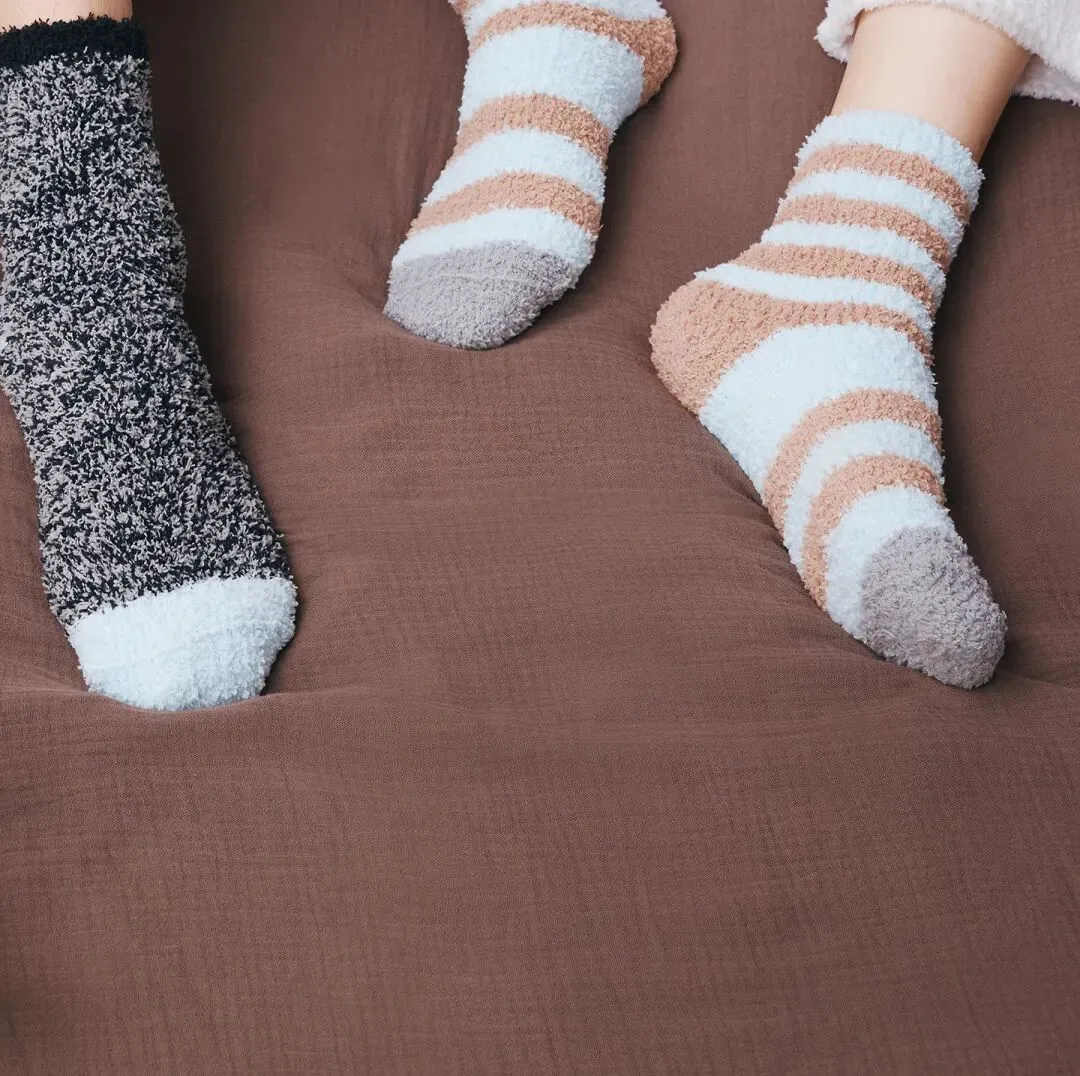 这款袜子的克重更高,用料更加扎实,厚绒PRO技术让它比普通地板袜更厚实、更保暖。无论是踩在冰冷的瓷砖上还是木地板上,都能迅速隔绝寒意,让你随时随地都能感受到脚底传来的温暖。