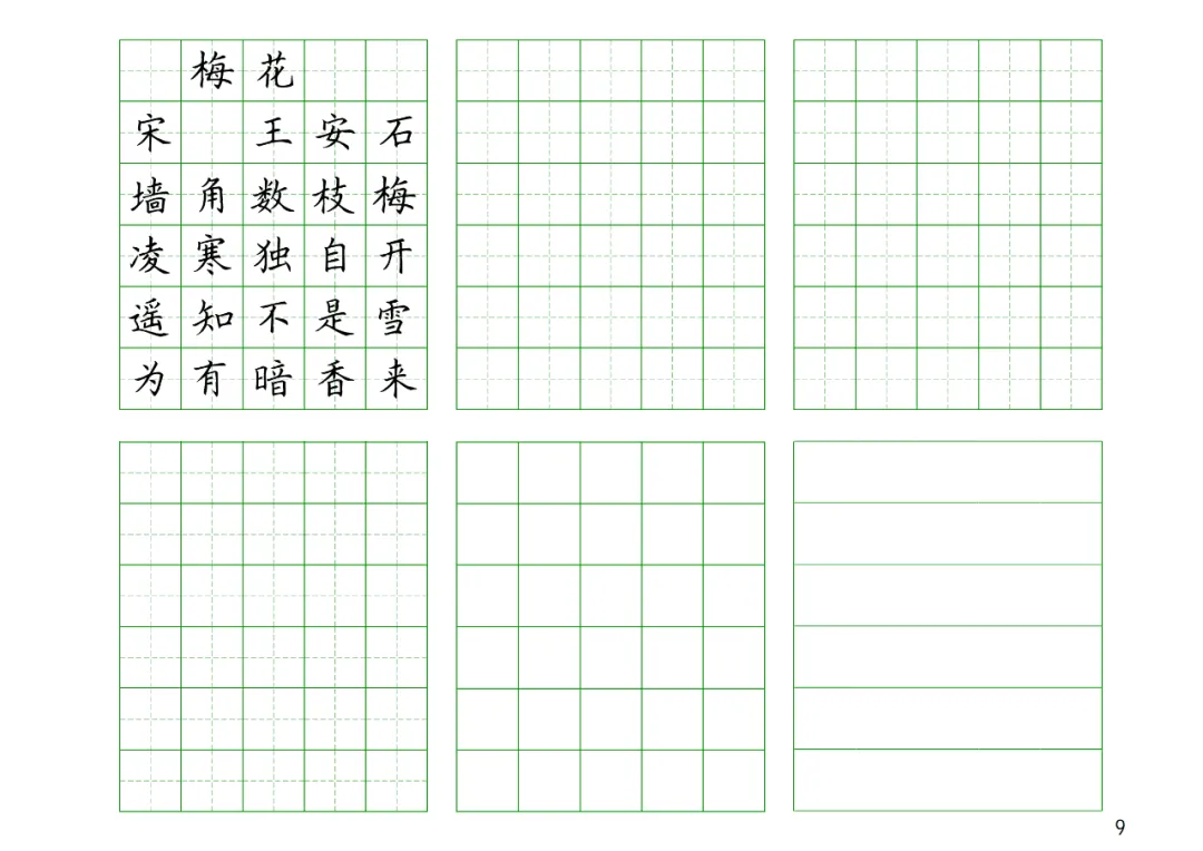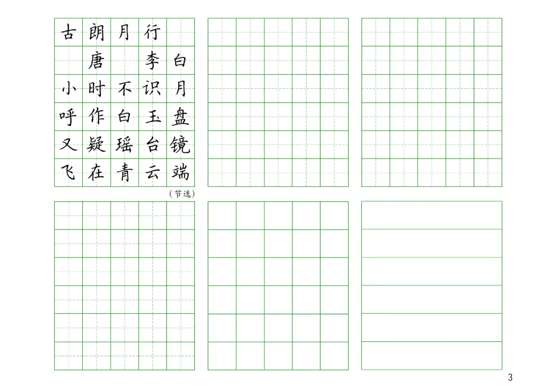 硬笔书法教学,古诗书法临摹是重要的步骤,让孩子在学习书法中,掌握古诗内容,一举两得。古诗的临摹练习,一定要注意观察范字,注意教材书写的形式,高效掌握。