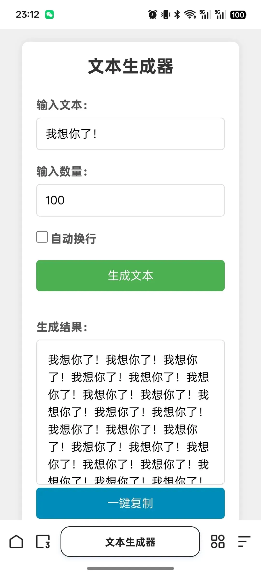 就能自动生成100句“我想你了”,
