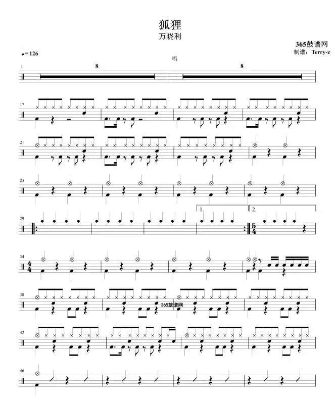 原创鼓谱 狐狸 鼓谱 架子鼓 高清鼓谱PDF
