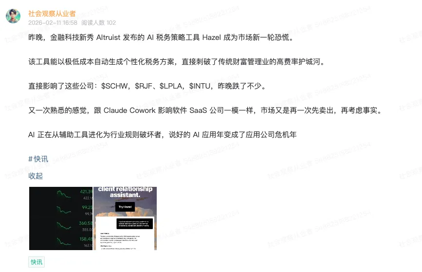 这次的 Hazel 恐慌叙事延续了 Claude Cowork,但基本面依然不变,只是短期利空,长期影响不大。