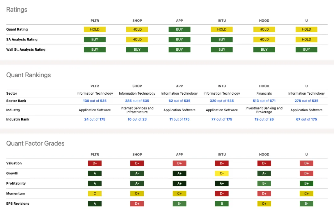 我的排序是:INTU > PLTR > APP > SHOP > HOOD > U