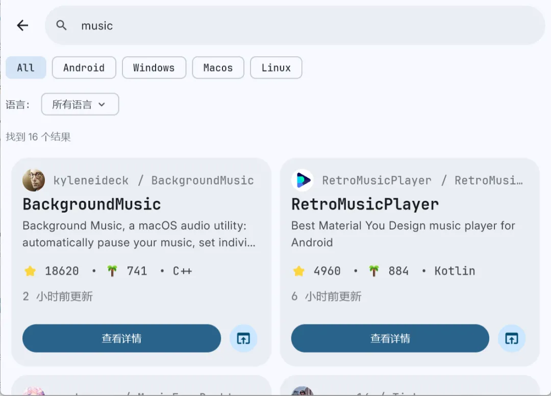 很快就能搜到非常多的开源音乐播放器