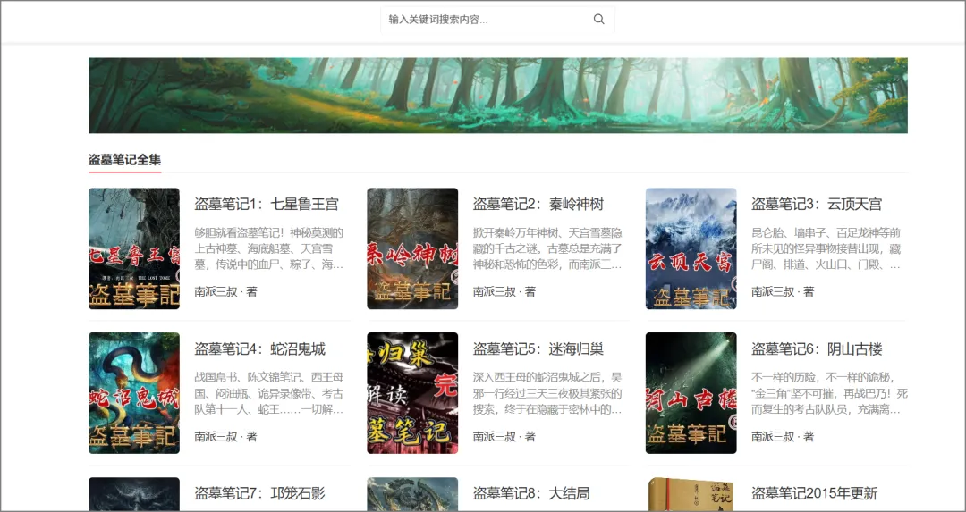 肯定是书迷制作的网站,里面提供老三叔作品在线阅读的小说网站,主打《盗墓/笔记》全集,包含《七星鲁王宫》《秦岭神树》等八部正传及大结局,还收录《沙海》《藏海花》等衍生作品。网站以在线阅读、电子版为核心功能,分类清晰,方便读者查找,整体围绕盗墓笔记系列内容展开,是面向书迷的垂直阅读平台。
