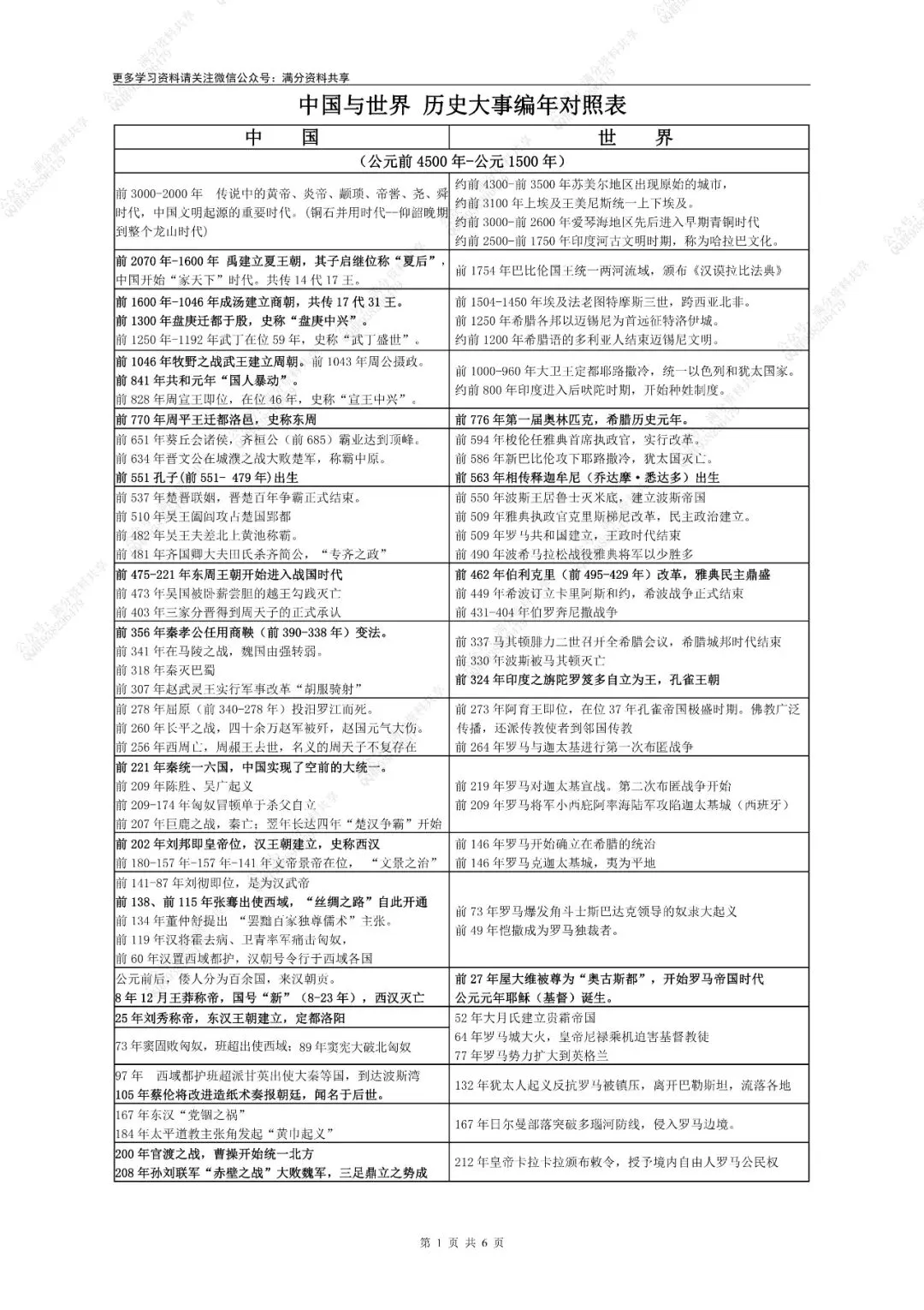 高中历史世界史与中国史对照年表(pdf分享) 点击图片可观看高清版,文末有获取打印版方式 领取完整电子版: ①:点一点右下角的“赞”和“在看”,感谢! ②:点击“关注”回复“高中资料”获取资料 点击下方“公众号”关注,可以进入主页哦!