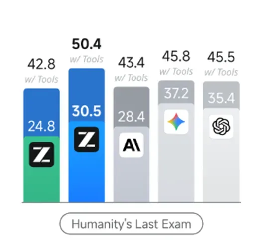 * 人类终极测试:不带工具模式下,得分从24.8提升至30.5;带工具模式下,得分从42.8飙升至50.4,甚至超过了Claude Opus 4.5。
