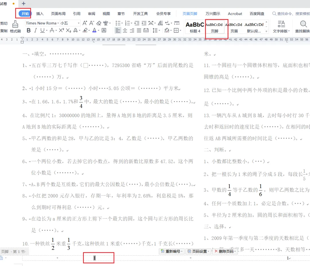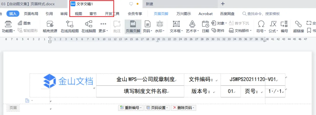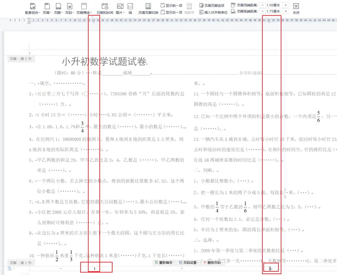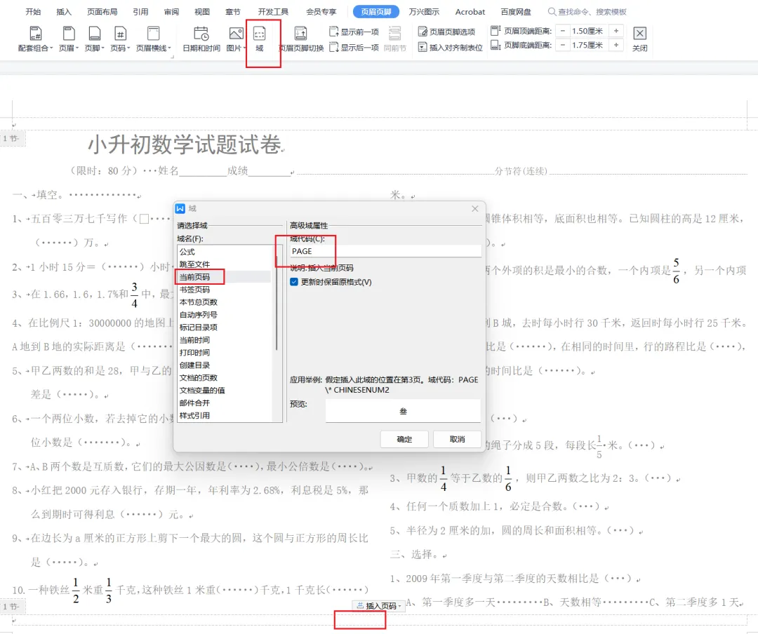 二、学会插入页码域,实现一页多页码