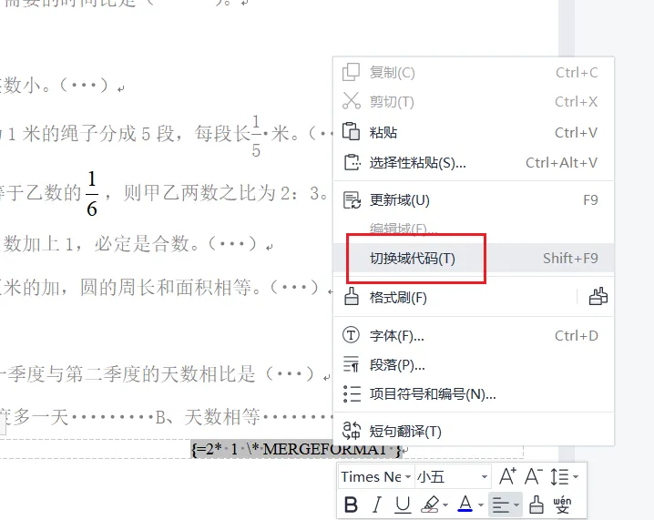 然后光标放到其他位置,再次切换域代码