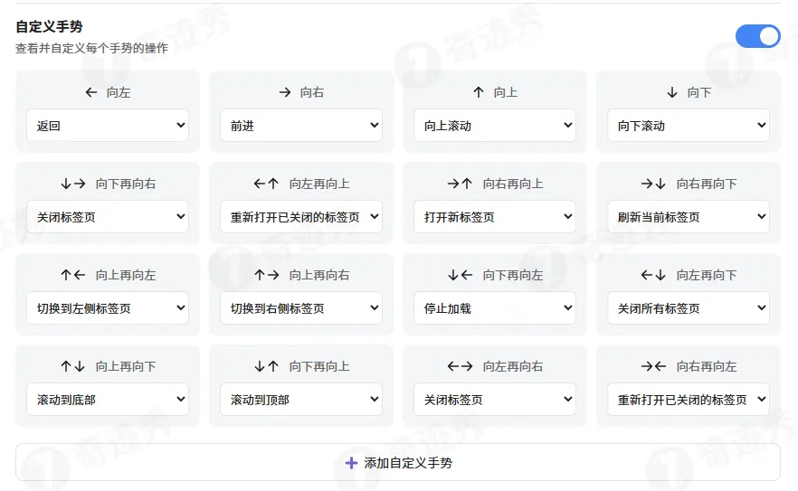 在设置选项中开启自定义手势功能,就能按照自己的使用习惯设置手势,操作更便捷。