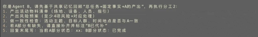 比如:策划活动时,创意阶段需要发散思维、天马行空。执行阶段需要落地细节、风险把控。让同一个 Agent 既发散又严谨,很容易精神分裂。