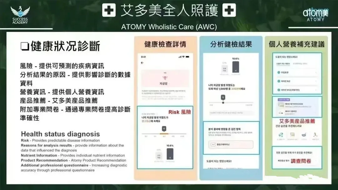 当科技与健康深度交融在数字医疗蓬勃发展的今天,艾多美(Atomy)再次以颠覆者姿态登场!2025年,这家深耕医美保健领域的跨国企业,正式推出全球首款精准医学全人照护AWC App(Atomy’s Wholistic Care Program)。这款由医生、美容专家、营养学家联袂打造,并与韩国顶尖医院战略合作的人工智能健康管理平台,不仅重新定义了“个性化健康”,更将掀起一场从身体到心灵的“全人健康革命”。