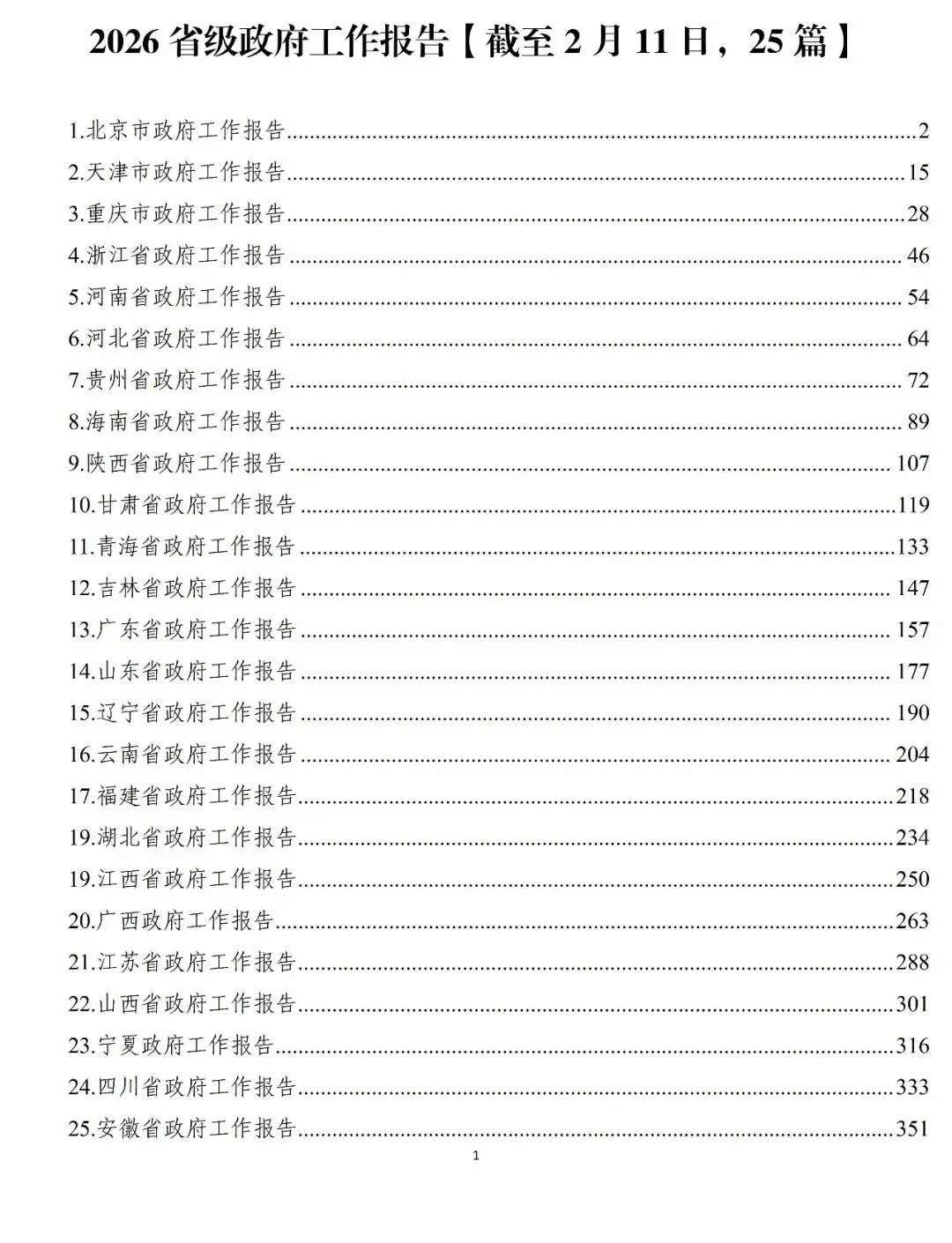 【共169篇、Word版更新25个省份】2026年省、市、县(区)《政府工作报告》更新中【2月11日,新增6篇】