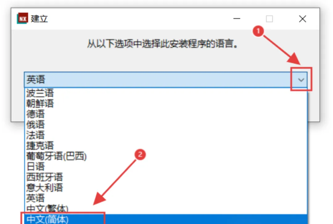 15.点击右边箭头图标展开,选择【中文(简体)】。